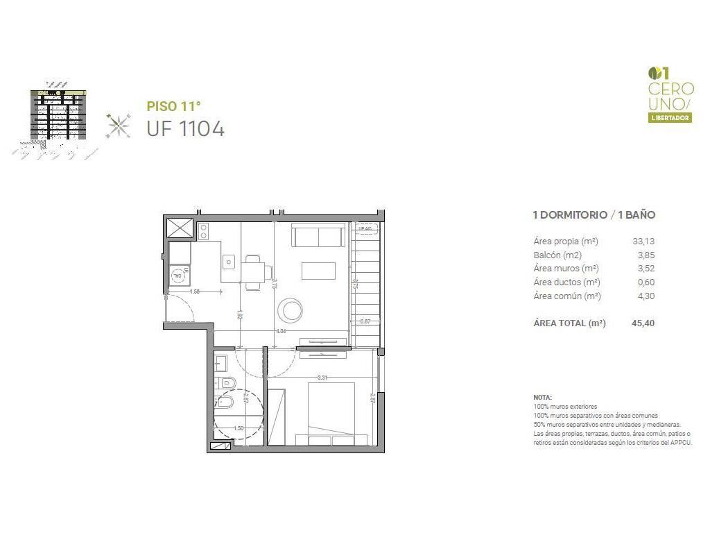 Alquiler de Apartamento 1 Dormitorio en Centro, Montevideo Edificio 01 Libertador, ubicado sobre Av. Libertador esq. Pozos del Rey. Piso 11 al contrafrente, vista muy despejada. Living comedor muy luminoso con cocina integrada. Terraza con vista despejada. Dormitorio. Baño completo. Se entrega con Aire Acondicionado en el living, Horno, Anafe y Campana. Garage para 1 auto incluído en el precio.- El edificio cuenta con barbacoa cerrada, parrilleros, solárium y bike parking. Garantías: Aseguradoras. Gastos comunes aproximados. Comisión inmobiliaria: 1 mes de alquiler + IVA.- AAP5313975 - Abate Propiedades - Gestionamos tu garantía de alquiler. Somos corredores de seguros de SURA - PORTO - SANCOR - ZURICH SANTANDER - MAPFRE .