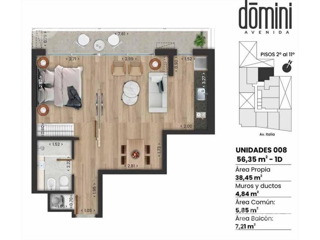 Venta de apartamento de 1 dormitorio en La Blanqueada El apartamento cuenta con: - Cocina Integrada por barra - Living Comedor  - Baño Completo - Terraza - 1 Dormitorio Domini Avenida está ubicado sobre uno de los principales conectores este-oeste de Montevideo, a mitad de camino entre el Centro y Carrasco. Muy cerca de los Shoppings e hipermercados más importantes de la ciudad, como también de los principales centros de salud del país. La cercanía al Parque Batlle completa esta excelente ubicación y equilibra la convivencia urbana con la naturaleza de uno de los grandes pulmones verdes de la ciudad. -109 apartamentos -59 cocheras -Bicicletero -Laundry -Gimnasio -Playroom -2 Barbacoas/Parrillas -2 Terrazas Lounge -Local Comercial Cochera opcional desde U$S 18.000 Comisión inmobiliaria: 3% + IVA Gastos de Ocupación: 4% Fondo de reserva: 0.25% OPCIONES DE PAGO: Durante Obra: 10% reserva, 20% compromiso, 60% durante obra, 10% ocupación Financiamiento con banco: 5% reserva, 5% compromiso, 10% durante obra, 80% ocupación. INMOBILIARIA GOLF Afiliados a Cámara Inmobiliaria Uruguaya