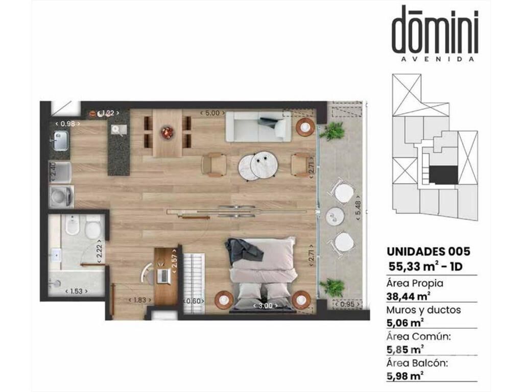 Venta de apartamento de 1 dormitorio en La Blanqueada El apartamento cuenta con: - Cocina Integrada por barra - Living Comedor  - Baño Completo - Terraza - 1 Dormitorio Domini Avenida está ubicado sobre uno de los principales conectores este-oeste de Montevideo, a mitad de camino entre el Centro y Carrasco. Muy cerca de los Shoppings e hipermercados más importantes de la ciudad, como también de los principales centros de salud del país. La cercanía al Parque Batlle completa esta excelente ubicación y equilibra la convivencia urbana con la naturaleza de uno de los grandes pulmones verdes de la ciudad. -109 apartamentos -59 cocheras -Bicicletero -Laundry -Gimnasio -Playroom -2 Barbacoas/Parrillas -2 Terrazas Lounge -Local Comercial Cochera opcional desde U$S 18.000 Comisión inmobiliaria: 3% + IVA Gastos de Ocupación: 4% Fondo de reserva: 0.25% OPCIONES DE PAGO: Durante Obra: 10% reserva, 20% compromiso, 60% durante obra, 10% ocupación Financiamiento con banco: 5% reserva, 5% compromiso, 10% durante obra, 80% ocupación. INMOBILIARIA GOLF Afiliados a Cámara Inmobiliaria Uruguaya