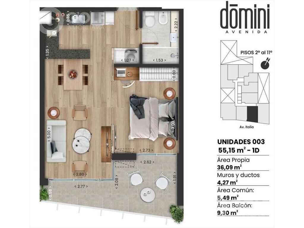 Domini Avenida está ubicado sobre uno de los principales conectores este-oeste de Montevideo, a mitad de camino entre el Centro y Carrasco. Muy cerca de los Shoppings e hipermercados más importantes de la ciudad, como también de los principales centros de salud del país. La cercanía al Parque Batlle completa esta excelente ubicación y equilibra la convivencia urbana con la naturaleza de uno de los grandes pulmones verdes de la ciudad.