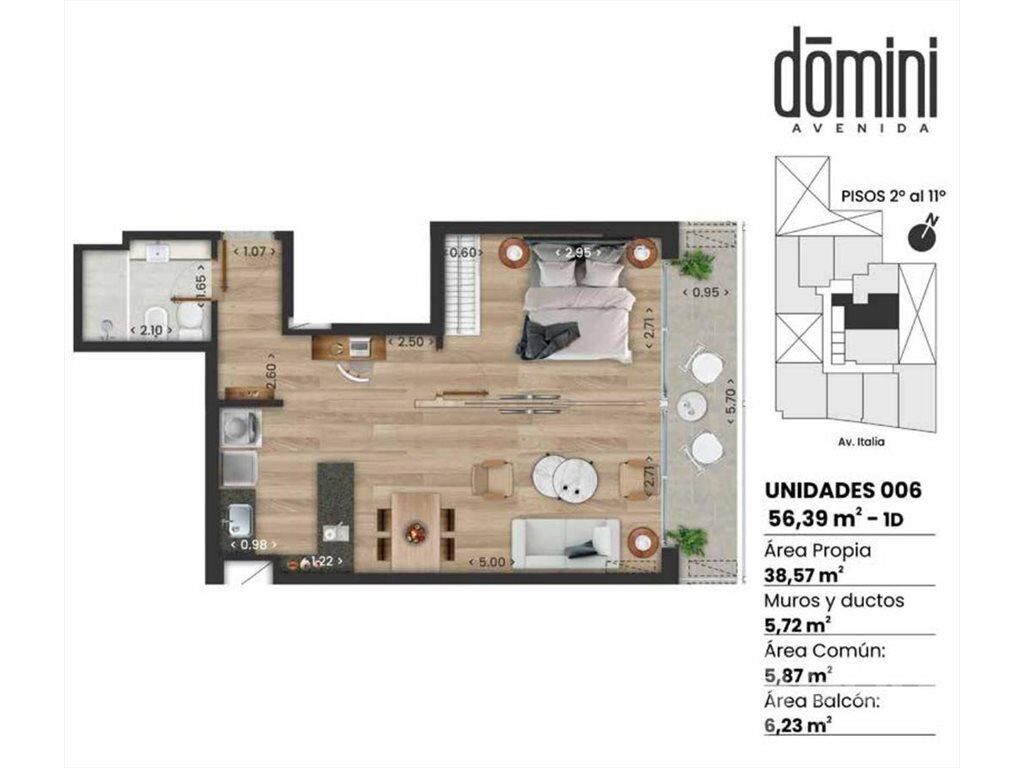 Domini Avenida está ubicado sobre uno de los principales conectores este-oeste de Montevideo, a mitad de camino entre el Centro y Carrasco. Muy cerca de los Shoppings e hipermercados más importantes de la ciudad, como también de los principales centros de salud del país. La cercanía al Parque Batlle completa esta excelente ubicación y equilibra la convivencia urbana con la naturaleza de uno de los grandes pulmones verdes de la ciudad.