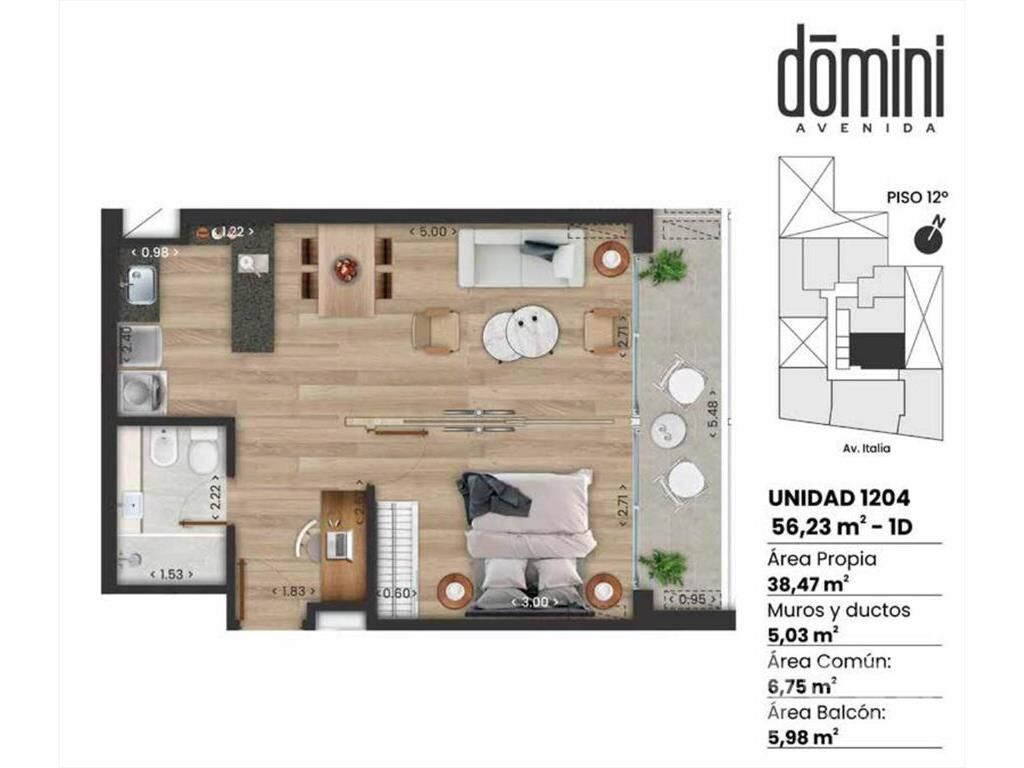 Venta de apartamento de 1 dormitorio en La Blanqueada El apartamento cuenta con: - Cocina Integrada por barra - Living Comedor  - Baño Completo - Terraza - 1 Dormitorio Domini Avenida está ubicado sobre uno de los principales conectores este-oeste de Montevideo, a mitad de camino entre el Centro y Carrasco. Muy cerca de los Shoppings e hipermercados más importantes de la ciudad, como también de los principales centros de salud del país. La cercanía al Parque Batlle completa esta excelente ubicación y equilibra la convivencia urbana con la naturaleza de uno de los grandes pulmones verdes de la ciudad. -109 apartamentos -59 cocheras -Bicicletero -Laundry -Gimnasio -Playroom -2 Barbacoas/Parrillas -2 Terrazas Lounge -Local Comercial Cochera opcional desde U$S 18.000 Comisión inmobiliaria: 3% + IVA Gastos de Ocupación: 4% Fondo de reserva: 0.25% OPCIONES DE PAGO: Durante Obra: 10% reserva, 20% compromiso, 60% durante obra, 10% ocupación Financiamiento con banco: 5% reserva, 5% compromiso, 10% durante obra, 80% ocupación. INMOBILIARIA GOLF Afiliados a Cámara Inmobiliaria Uruguaya