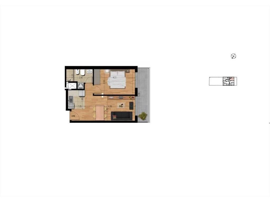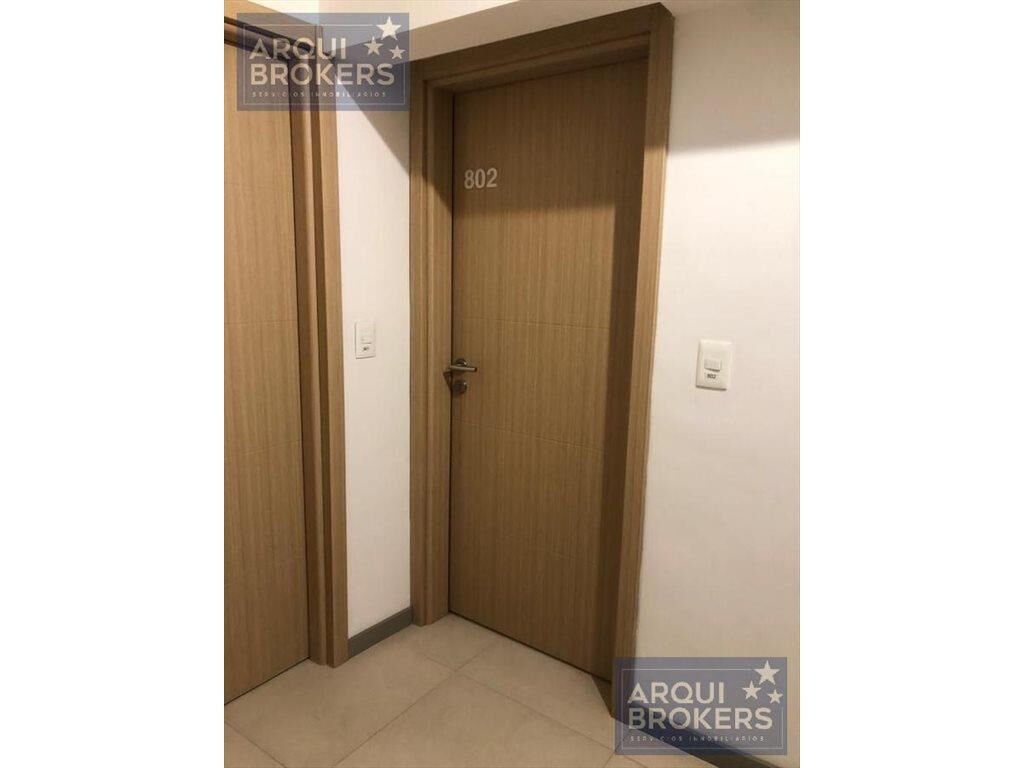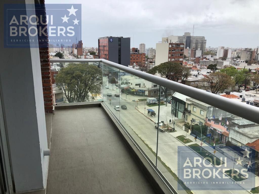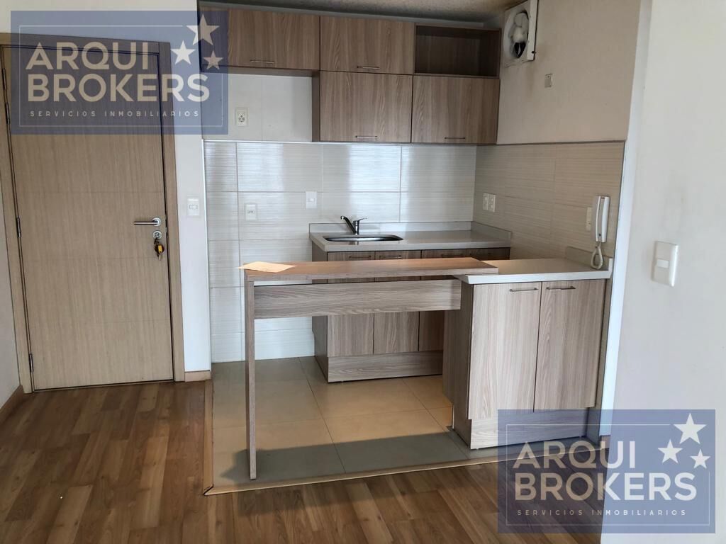 Living comedor con terraza al frente, cocina integrada con barra, 1 dormitorio y 1 baño completo.
