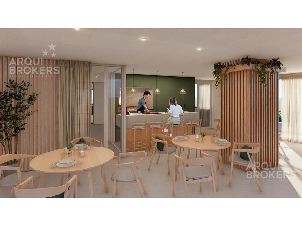 El edificio cuenta con 3 amplias terrazas para disfrutar del aire libre, cancha de bochas, ajedrez, tejo, bancos, zona fit, gimnasio exterior equipado, plaza con juegos infantiles, laundry, cerraduras electrónicas, ecommerce lockers, fitness Room, indoor Spinning, pilates, gamers Room, open Kitchen, barbacoas.