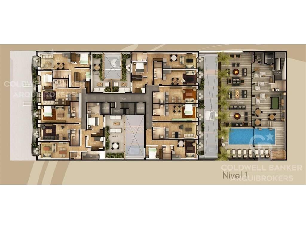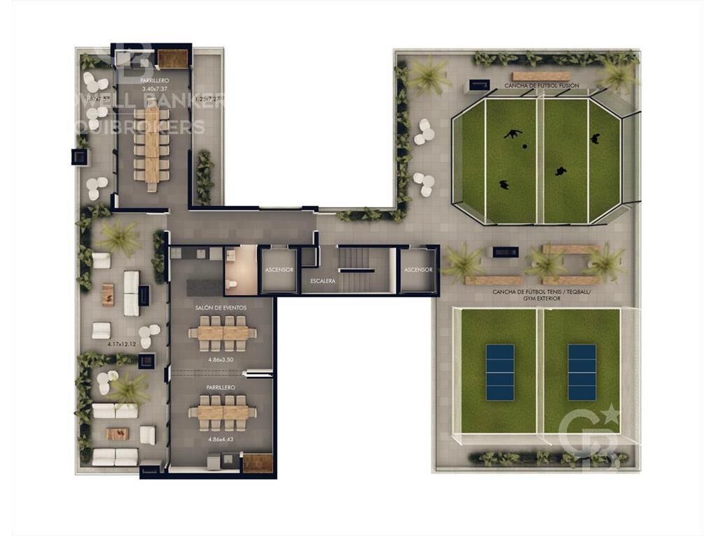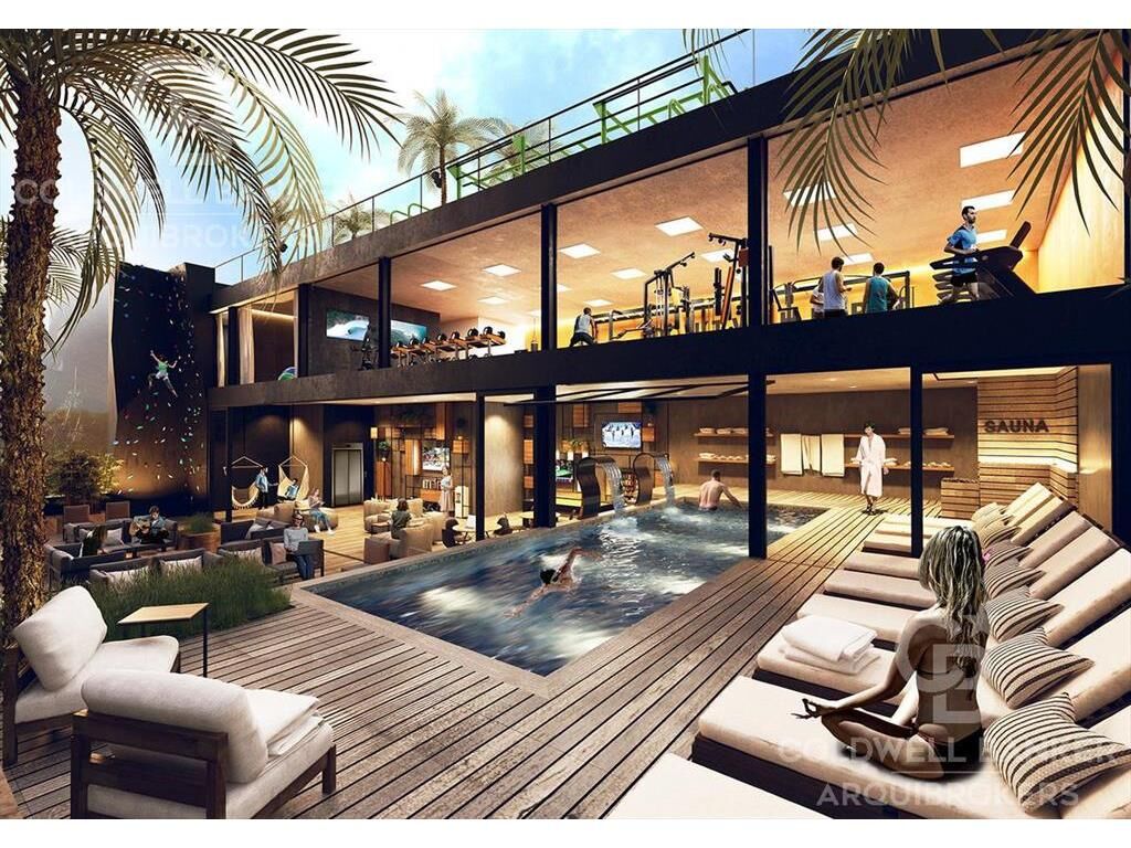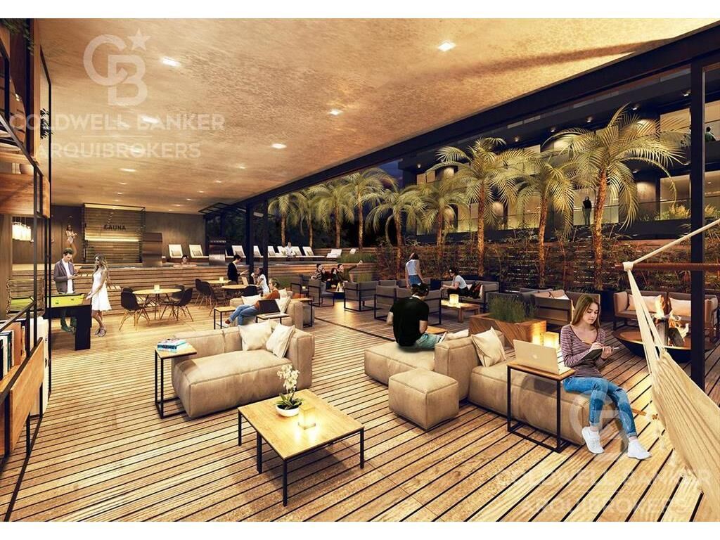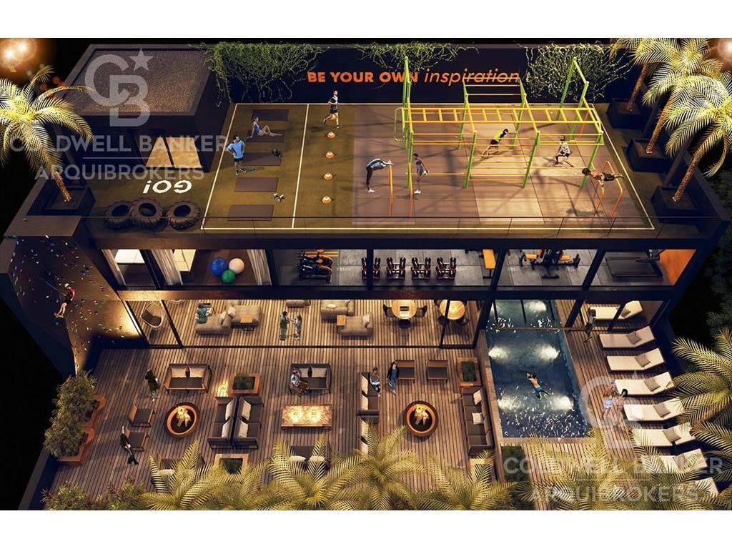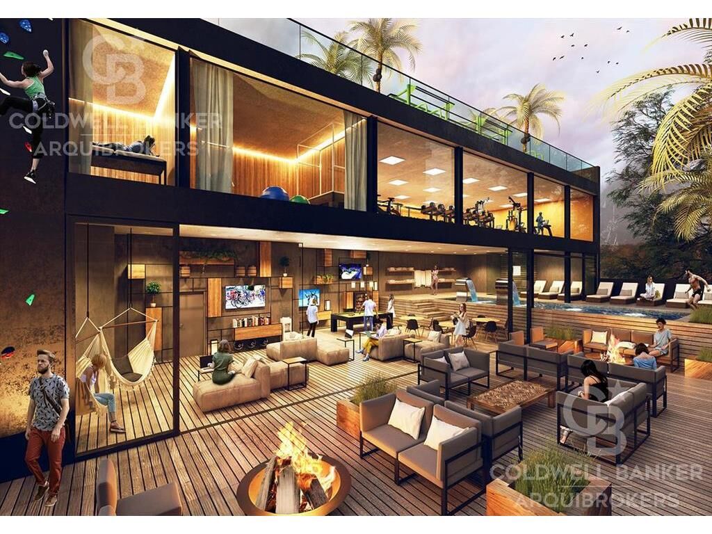 El edificio cuenta con co- living, co-work, sauna, laundry, 2 barbacoas, salón gourmet, fogones exteriores, CCTV, piscina, sala de musculación, canchas de teqball, pilates, crassfit, masajes, cardio, spinning, boxeo, fútbol, muro de escalada, calistenia, nado contracorriente.