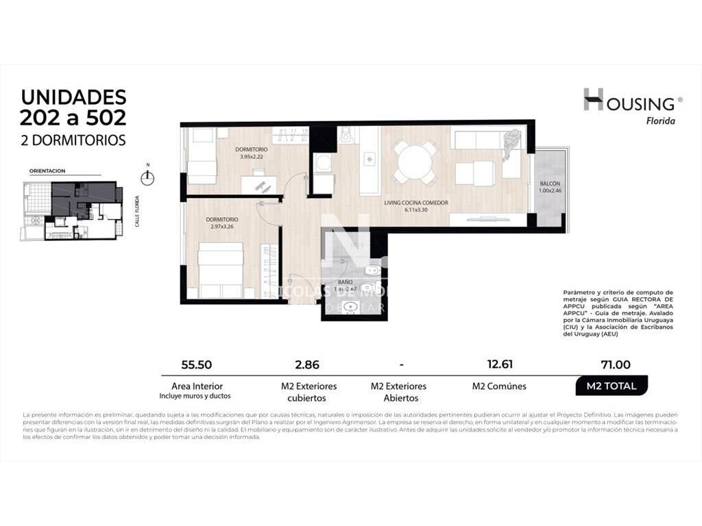 Piso 4 - 68 m2 interiores y 3 m2 de Terraza.