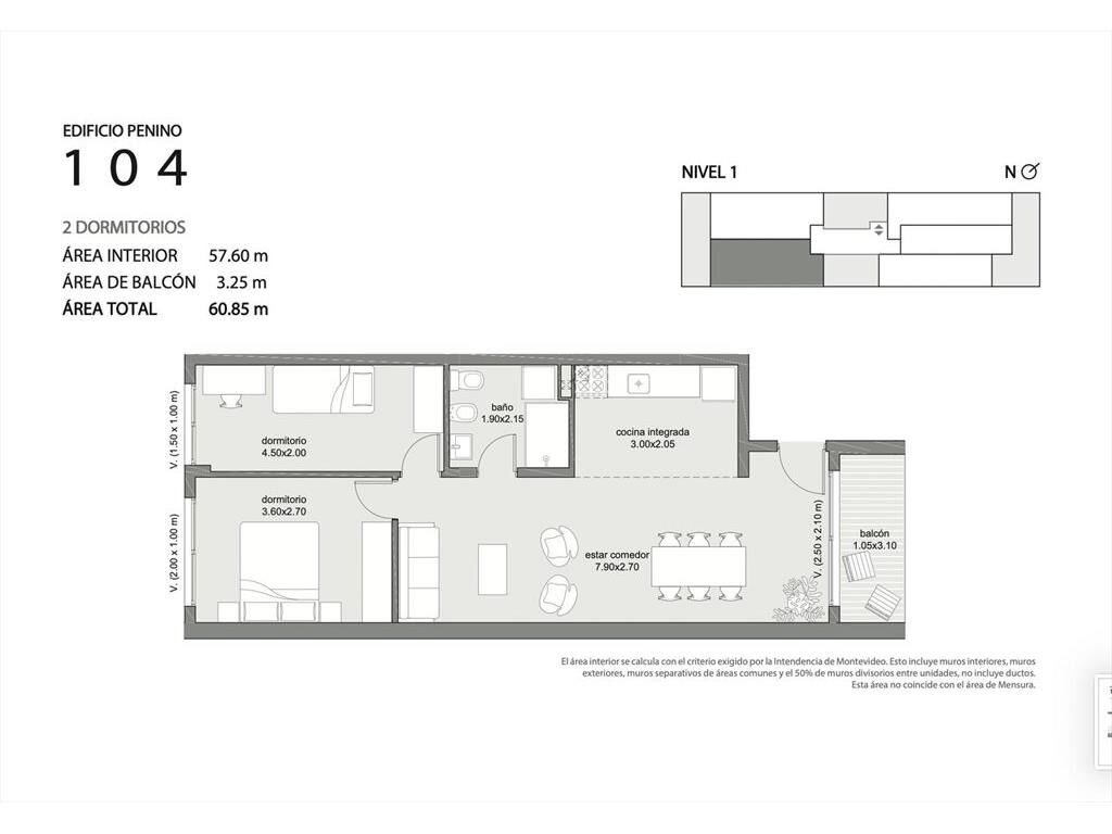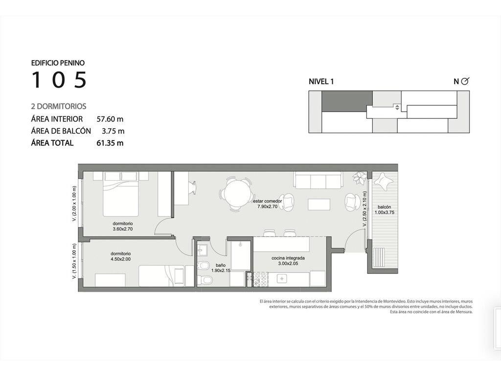 Apartamento en primer piso Living-comedor con cocina integrada Balcón 1 baño completo 2 dormitorios CBU60552 AP6622003