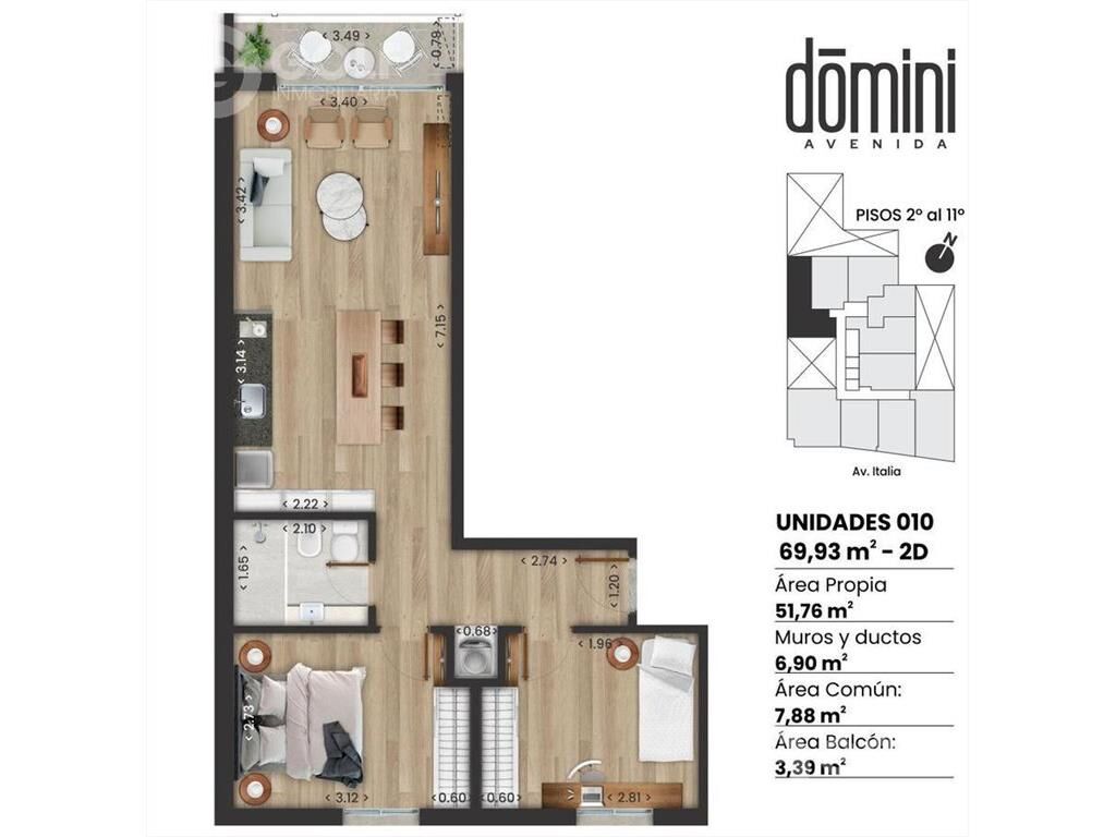 Venta de apartamento de 2 dormitorios en La Blanqueada El apartamento cuenta con: - Cocina Integrada por barra - Living Comedor  - Baño Completo - Terraza - 2 Dormitorios Domini Avenida está ubicado sobre uno de los principales conectores este-oeste de Montevideo, a mitad de camino entre el Centro y Carrasco. Muy cerca de los Shoppings e hipermercados más importantes de la ciudad, como también de los principales centros de salud del país. La cercanía al Parque Batlle completa esta excelente ubicación y equilibra la convivencia urbana con la naturaleza de uno de los grandes pulmones verdes de la ciudad. -109 apartamentos -59 cocheras -Bicicletero -Laundry -Gimnasio -Playroom -2 Barbacoas/Parrillas -2 Terrazas Lounge -Local Comercial Cochera opcional desde U$S 18.000 Comisión inmobiliaria: 3% + IVA Gastos de Ocupación: 4% Fondo de reserva: 0.25% OPCIONES DE PAGO: Durante Obra: 10% reserva, 20% compromiso, 60% durante obra, 10% ocupación Financiamiento con banco: 5% reserva, 5% compromiso, 10% durante obra, 80% ocupación. INMOBILIARIA GOLF Afiliados a Cámara Inmobiliaria Uruguaya