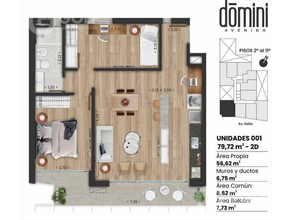 Domini Avenida está ubicado sobre uno de los principales conectores este-oeste de Montevideo, a mitad de camino entre el Centro y Carrasco. Muy cerca de los Shoppings e hipermercados más importantes de la ciudad, como también de los principales centros de salud del país. La cercanía al Parque Batlle completa esta excelente ubicación y equilibra la convivencia urbana con la naturaleza de uno de los grandes pulmones verdes de la ciudad.