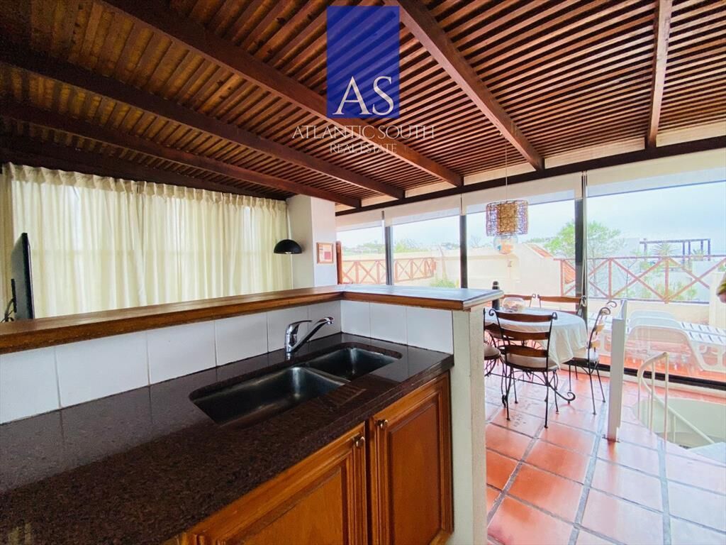 Escalera caracol en el living que conduce a una hermosa terraza propia totalmente cerrada y transformada en un gran living, cocina y parrillero.