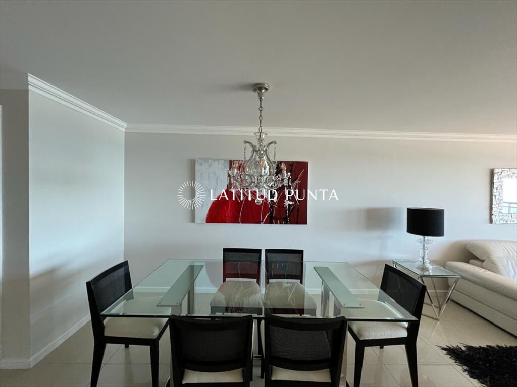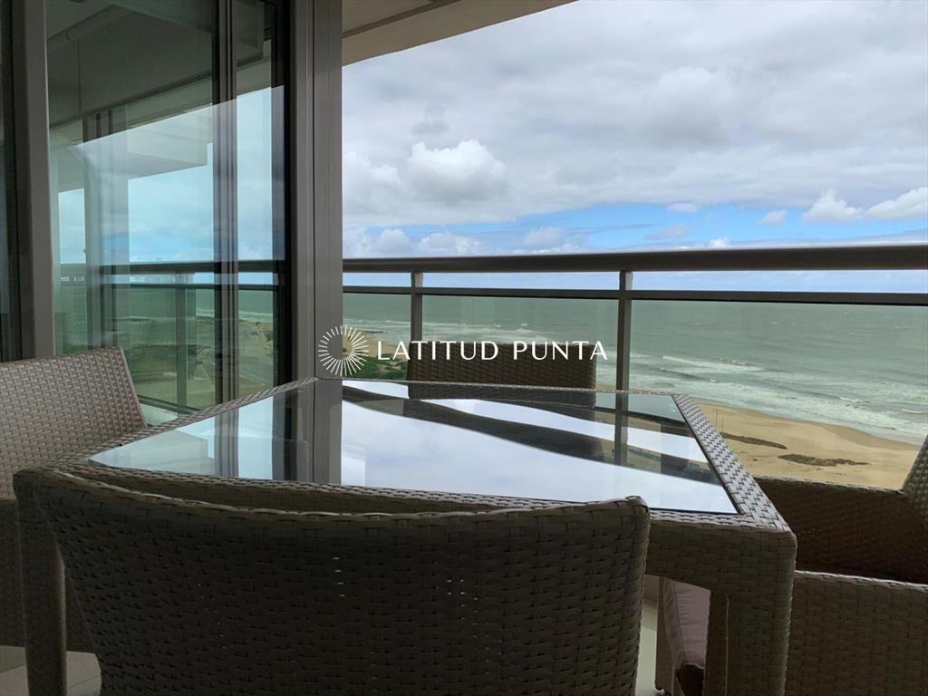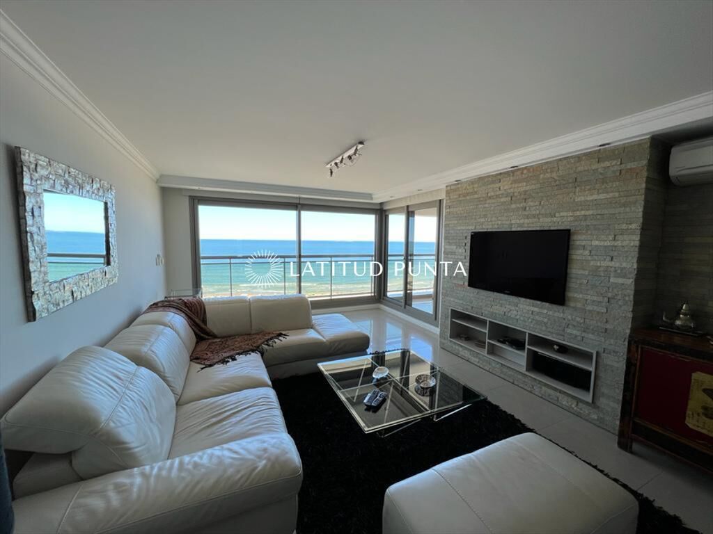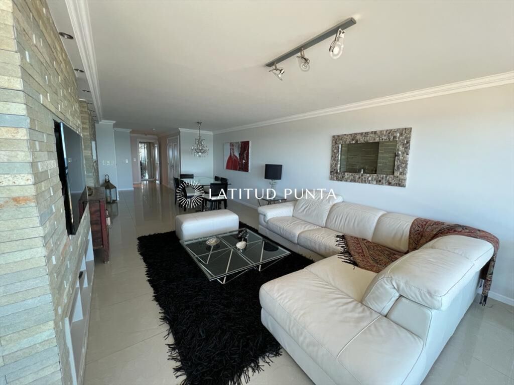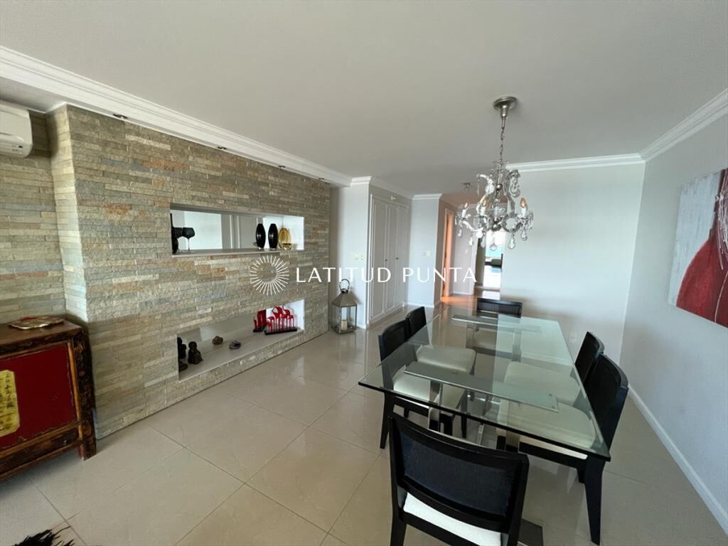 Apartamento de 3 dormitorios en suite en playa Brava. Cuenta con amplio living-comedor muy luminoso con amplia terraza al mar, cocina definida con lavadero, toilette y garage. Torre de categoría con excelentes amenities.