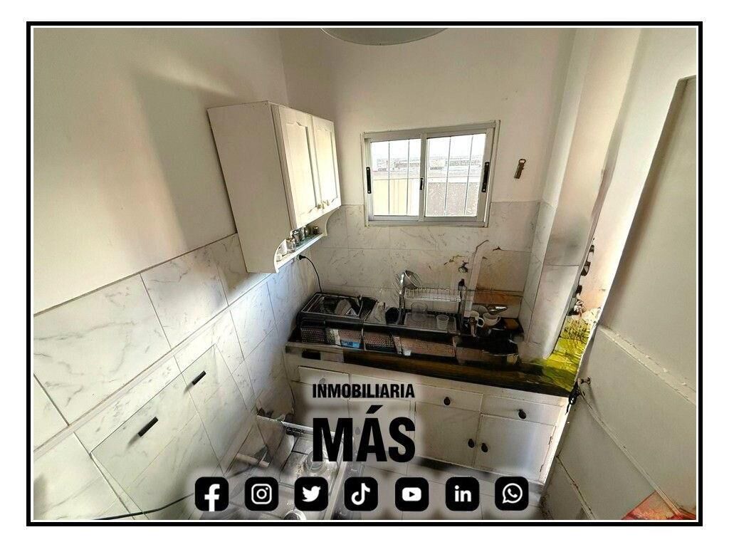 Cocina con placard bajo - sobre mesada con salida a terraza con parrillero