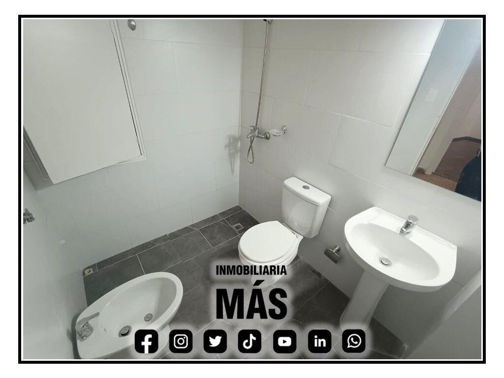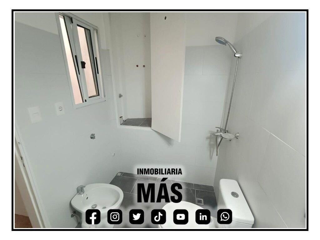 Baño completo con disposición para instalar lavarropas y calefón en placard con puerta.