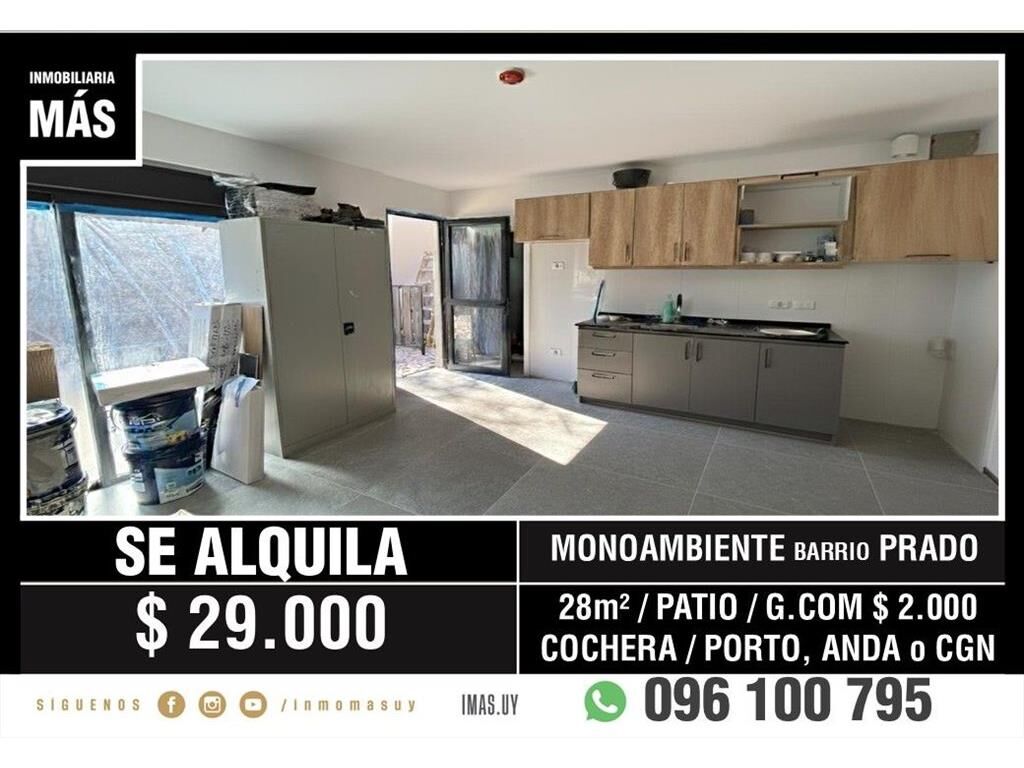 Alquiler de Apartamento MONOAMBIENTE en Prado, Montevideo