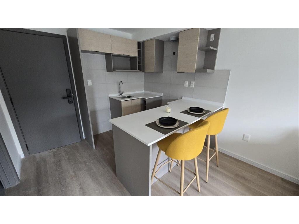Cuenta con living comedor con cocina integrada con muebles aéreos y bajo mesada. 1 dormitorio con placar. Terraza a lo ancho del apartamento de más de 6m2.