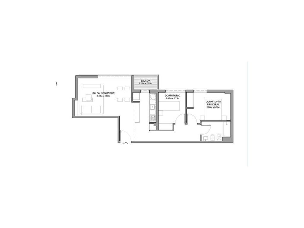 Apartamento a estrenar de 64m2 en edificio de moderno estilo vanguardista ubicado en Centro Sur. El apartamento consta de dos dormitorios, un baño, un amplio living-comedor y cocina con acceso a un balcón.