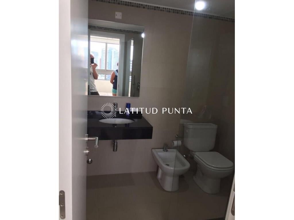 Cómodo apartamento con living-comedor y cocina integrada, linda orientación, terraza, dos dormitorios y dos baños (1 suite), garage. Edificio con amenities completos y a pasitos de playa Brava.