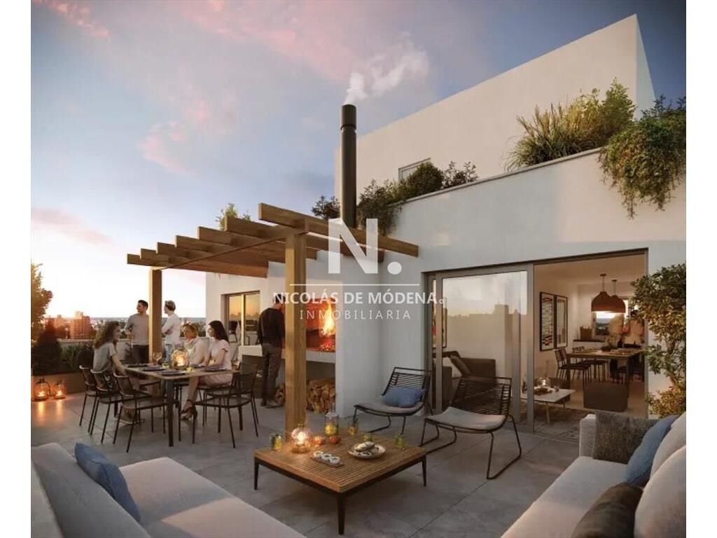 Unidades de 2 dormitorios incluyen: anafe vitro-cerámico y campana extractora de acero inoxidable y horno empotrado. Terraza al frente. Cocina definida con desayunador y segunda terraza lavadero. Placares completos.