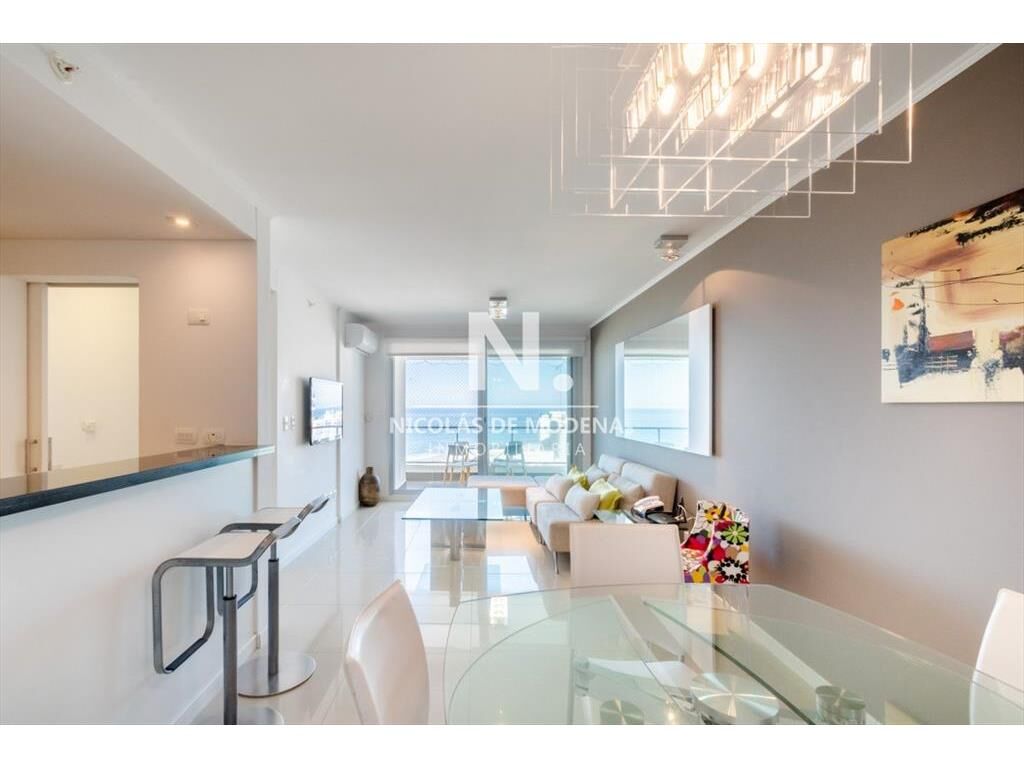 Excelente planta, con espacios amplios y luminosos, piso alto, con muy buena vista al mar de Playa Brava y a los atardeceres de la Mansa. Dispone de dos dormitorios, el principal en suite con vestidor, dos baños completos. Living comedor con extenso balcón mirando hacia el mar. Cocina bien equipada con barra-desayunador.