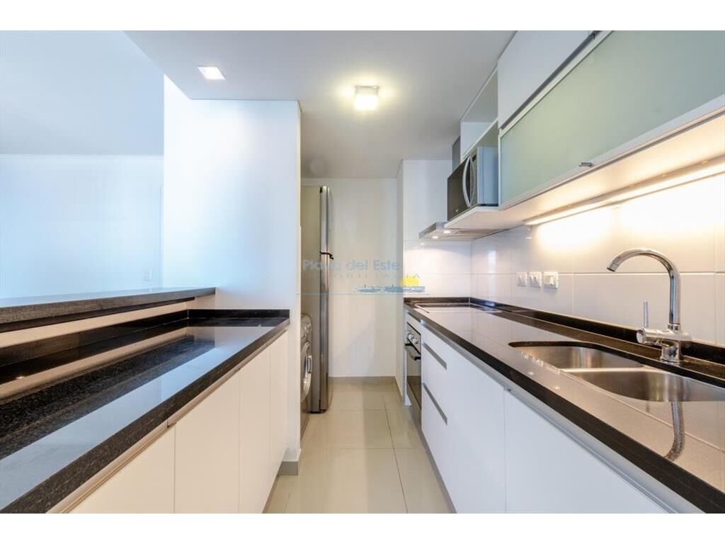 Excelente planta, con espacios amplios y luminosos, piso alto, con muy buena vista al mar de Playa Brava y a los atardeceres de la Mansa. Dispone de dos dormitorios, el principal en suite con vestidor, dos baños completos. Living comedor con extenso balcón mirando hacia el mar. Cocina bien equipada con barra-desayunador.