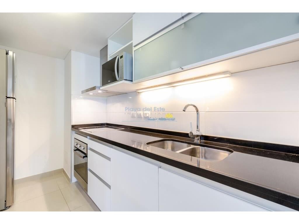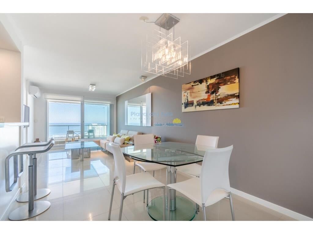 Excelente planta, con espacios amplios y luminosos, piso alto, con muy buena vista al mar de Playa Brava y a los atardeceres de la Mansa. Dispone de dos dormitorios, el principal en suite con vestidor, dos baños completos. Living comedor con extenso balcón mirando hacia el mar. Cocina bien equipada con barra-desayunador.