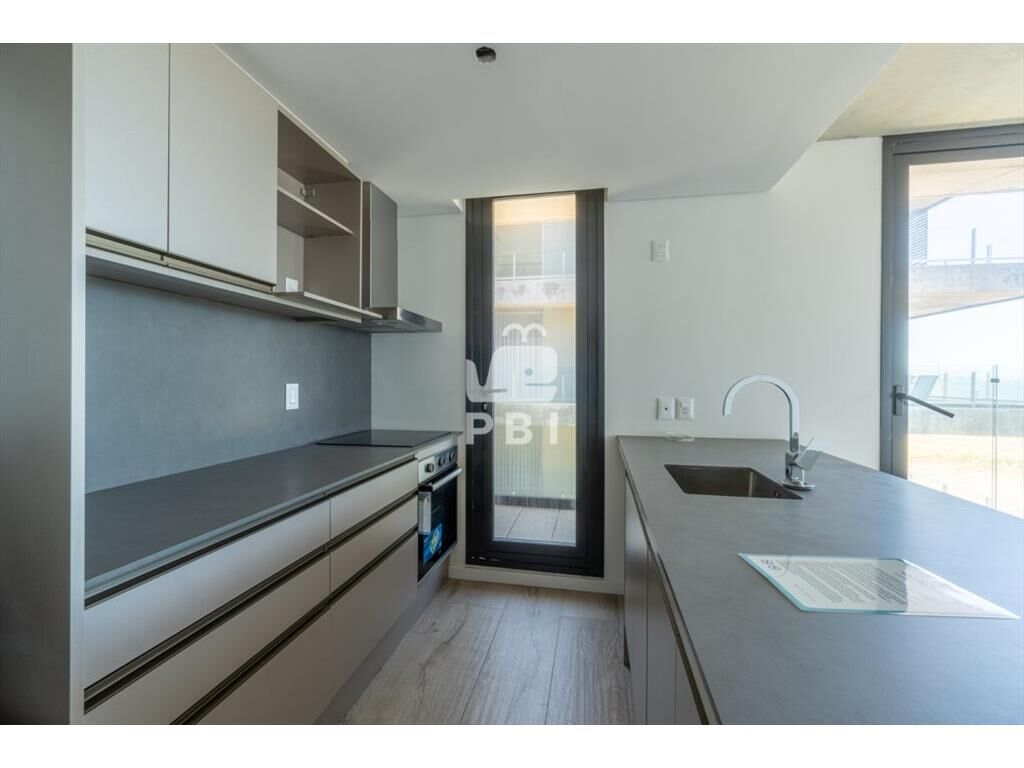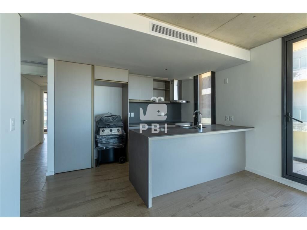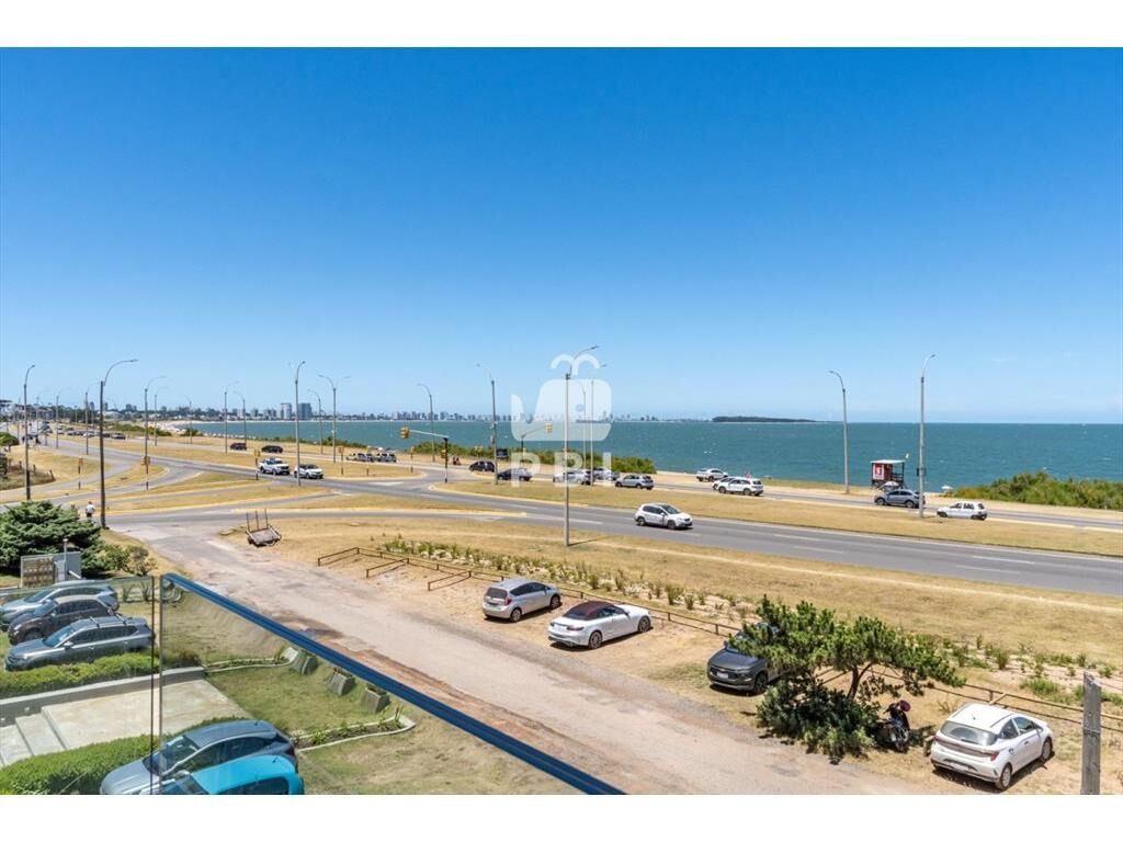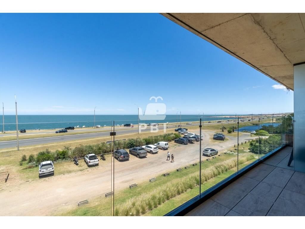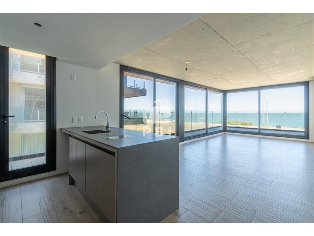 Apartamento con living comedor y cocina integrada, terraza con vista al mar, 2 dormitorios (1 suite) y 2 baños.