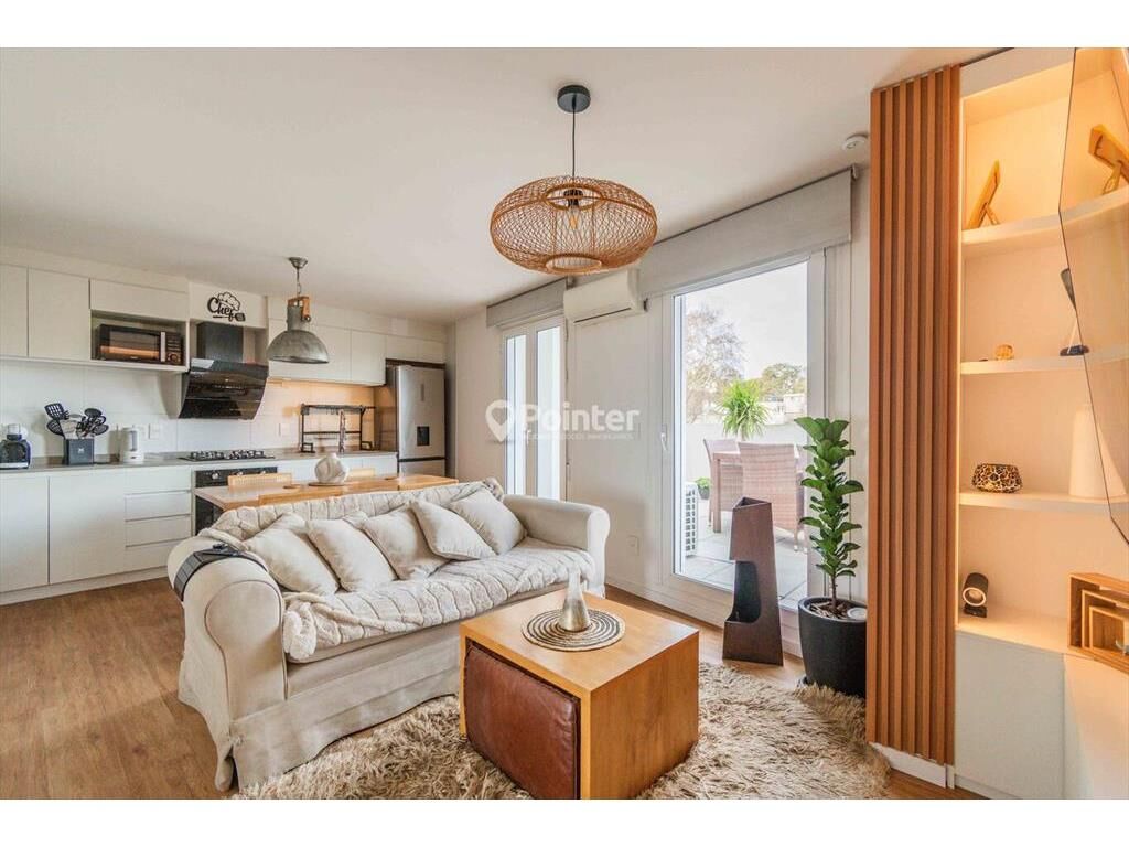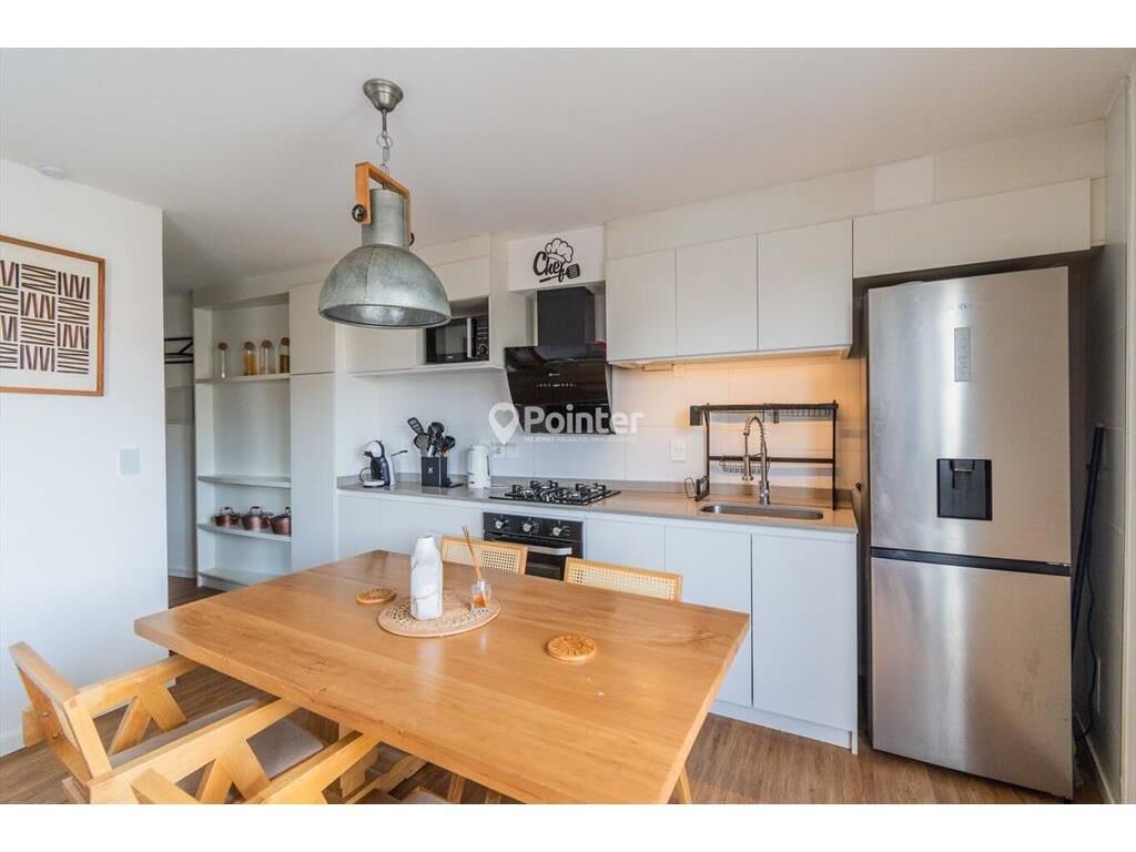 • Cocina integrada al living-comedor, equipada con horno empotrado, anafe de 4 hornallas, campana extractora y mobiliario completo bajo y sobre mesada.