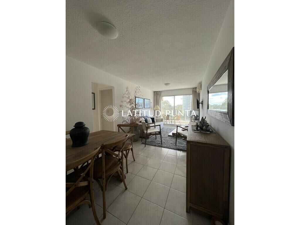Amplio departamento de 2 dormitorios y 2 baños, en edificio de construcción sólida. Cuenta con living-comedor, balcón, cocina definida con lavadero. Aire acondicionado y loza radiante. Garage en subsuelo. Recepción y lavadero común.