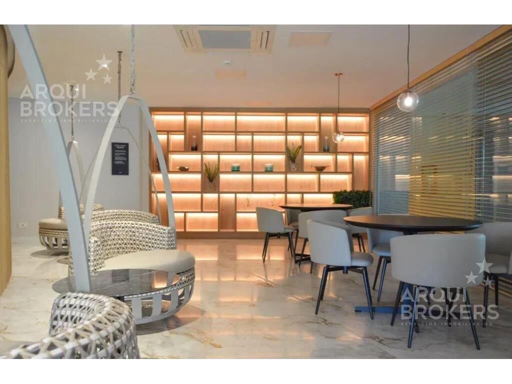 - Equipado: horno, anafe, campana extractora, microondas, lavavajillas, cocina cómoda, con amplios gabinetes, buenos espacios de guardado, mesada y barra en cuarzo, baños con espejos retroiluminados, mampara en vidrio templado.