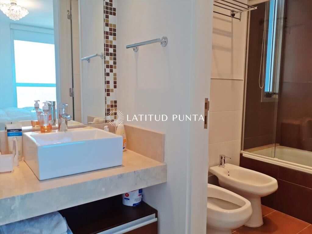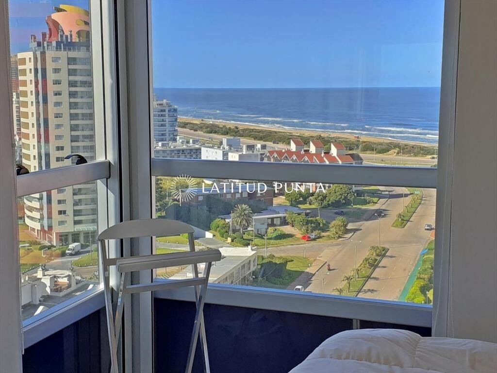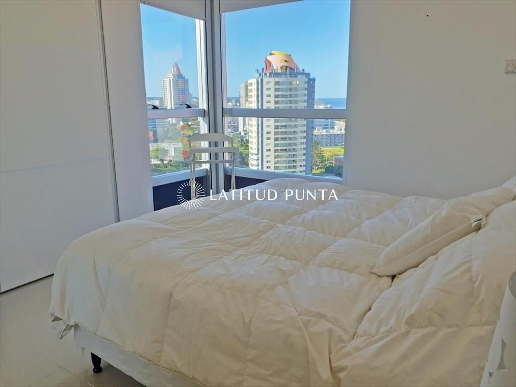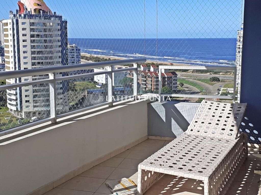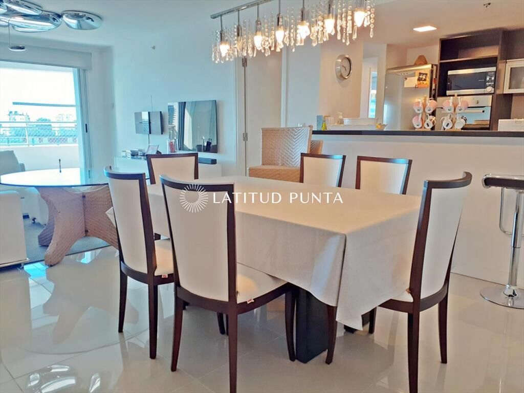 Apartamento sobre Av. Chiverta, con acceso caminando tanto a Mansa como a Brava y a poquitas cuadras de Enjoy Conrad. Piso alto de 3 dormitorios y 2 baños (principal en suite), amplia terraza, living-comedor con cocina integrada, garage. Aire acondicionado y losa radiante. Torre moderna con excelentes y completos amenities.