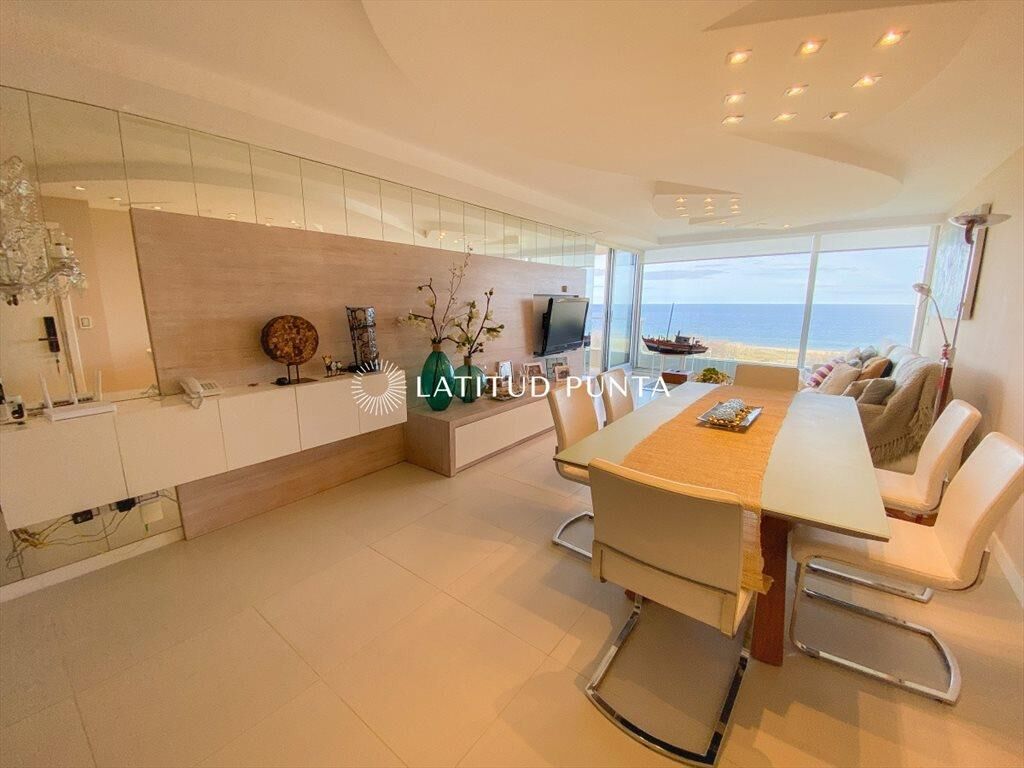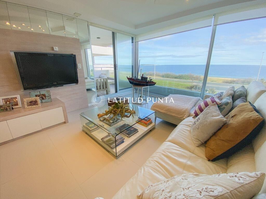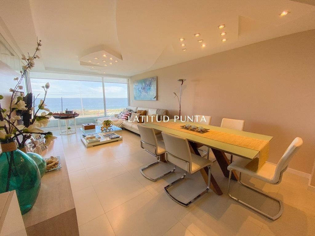 Luminoso, amplio y moderno apartamento con muy buena ubicación frente a playa Mansa, para disfrutar de los mejores atardeceres de Punta del Este. La unidad cuenta con 3 dormitorios en suite, 3 baños completos más toilette, amplio living-comedor, terraza doble (al frente y al fondo), cocina definida. Garage doble. Edificio con amenities de primera categoría, piscina exterior, jacuzzi, parrilleros, microcine, gimnasio, servicio de mucamas, entre otros.