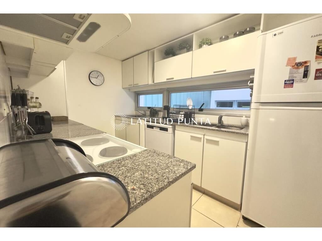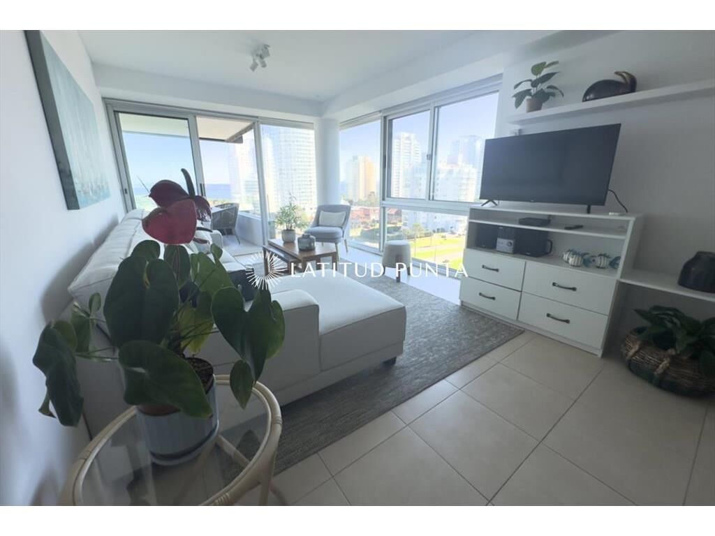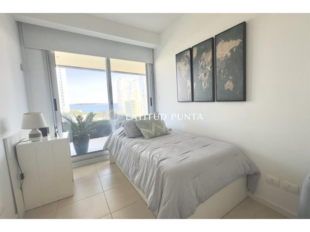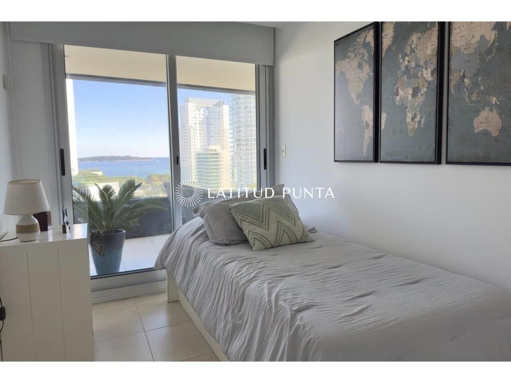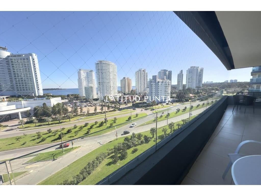 Excelente apartamento en piso 9 a una cuadra de Playa Mansa, con muy buena vista al mar y al Enjoy. Edificio con muy buenos servicios y cerca de la península. Living-comedor con aire acondicionado, cocina definida, 3 dormitorios, uno en suite, 2 baños completos más toilette. Terraza con vista al mar. Lavadero y garage.