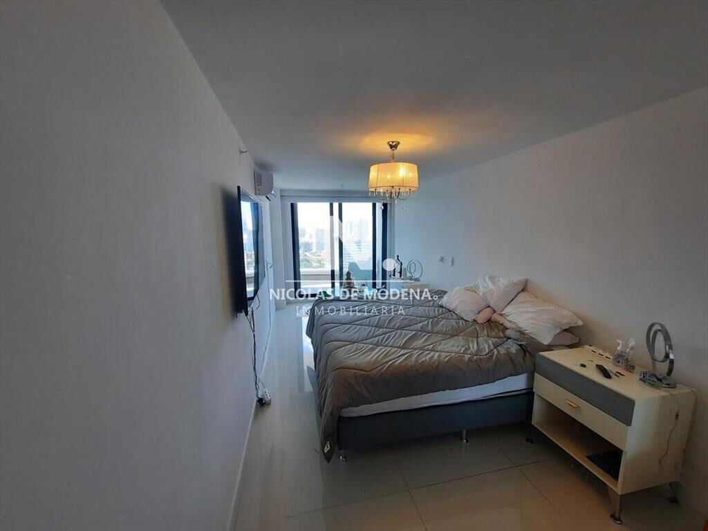 Piso alto con espectaculares vistas. Tres dormitorios, todos en suite. Principal con vestidor. Toilette. Baños con revestimiento de porcelanato y mesadas de mármol con mueble integrado. Grifería y aparatos sanitarios de alta calidad. Amoblamiento de cocina con alto diseño y finas terminaciones. Aberturas de alta prestación de aluminio con doble cristal.
