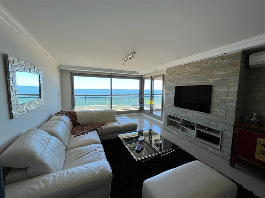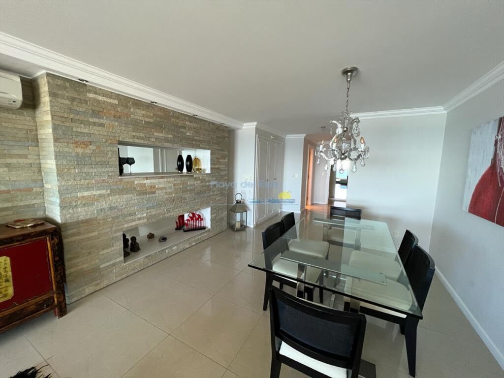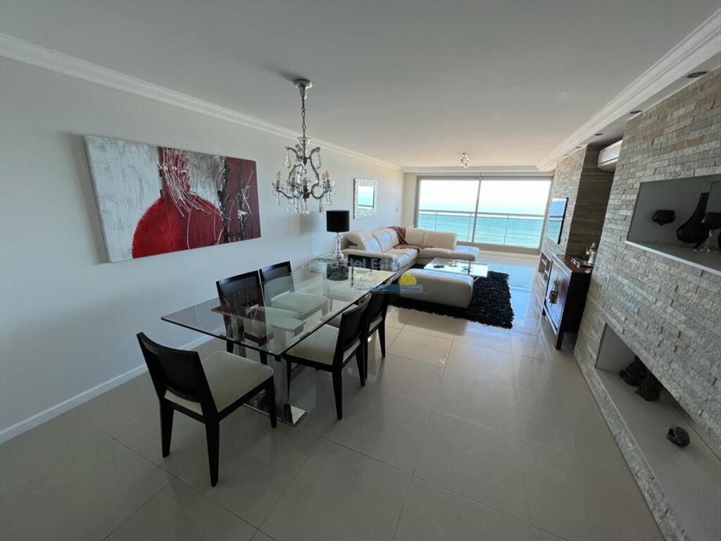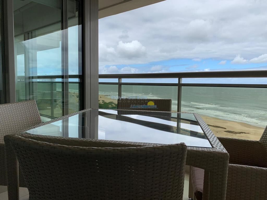 Piso alto, living comedor con amplia terraza al mar tres dormitorios con tres baños en suite más toilette y garage.