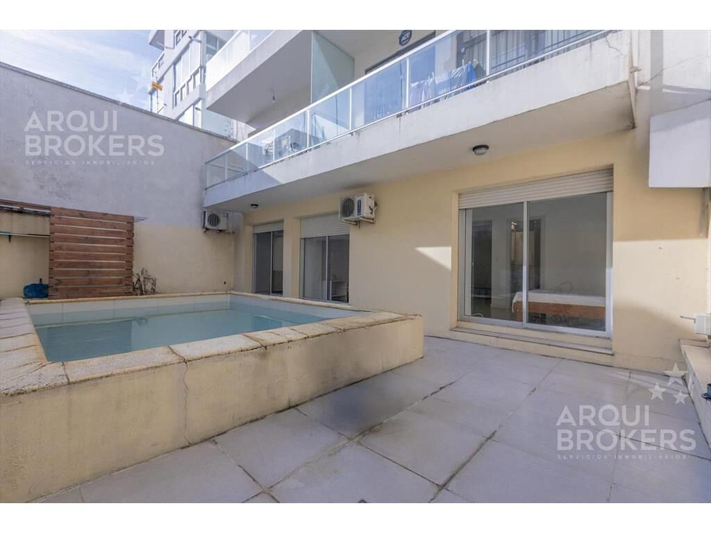 Living comedor con terraza al frente, cocina integrada con placares, 3 dormitorios, 2 baños, patio con piscina. Garaje fijo.