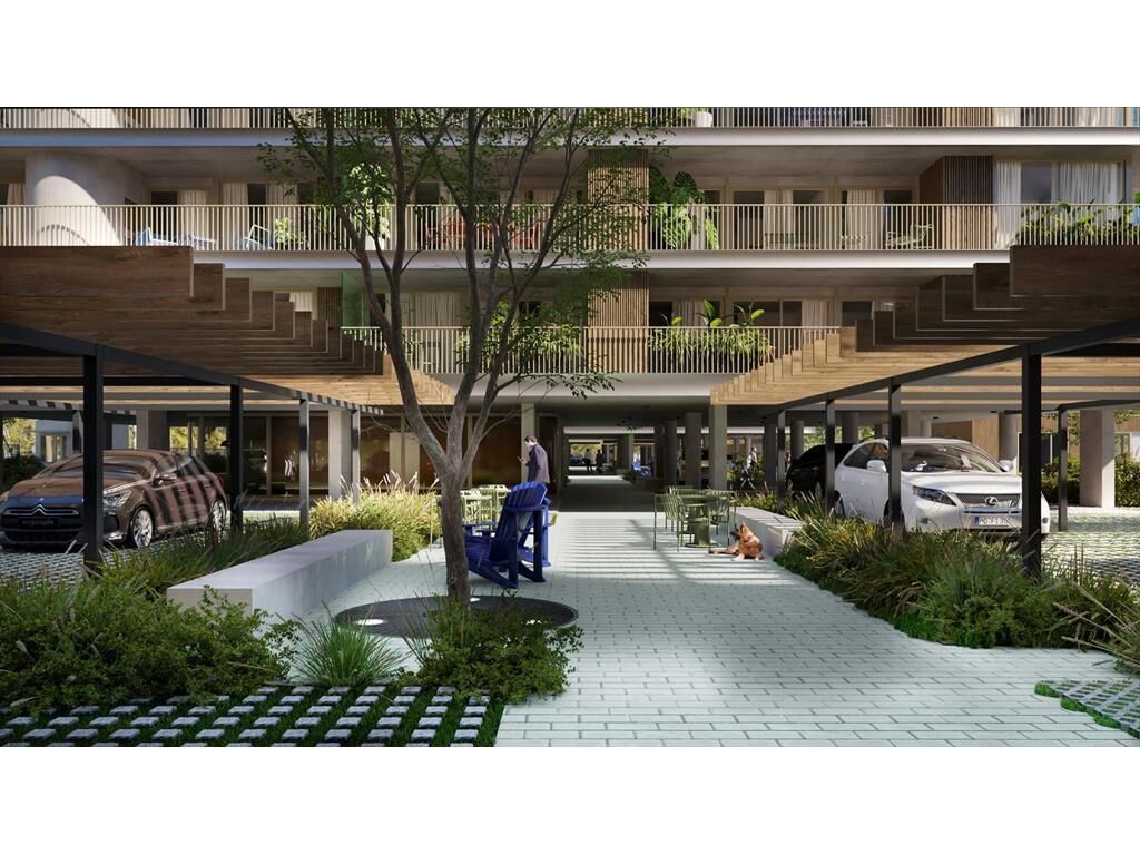 bike parking, plaza de juegos, pocket parks, plaza de recreación, senderos sustentables y cocheras.