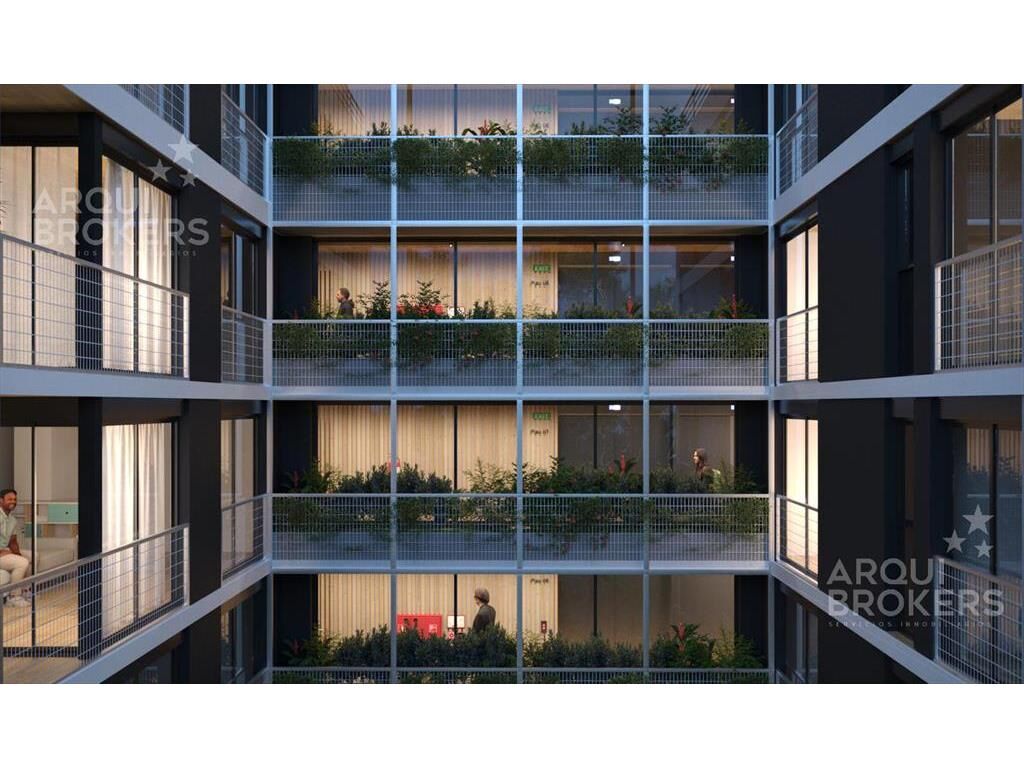 Living comedor con terraza de 9 m2, cocina integrada con placares, 2 dormitorios, 1 baño con conexión para lavarropas. Cuenta con agua caliente individual y separación de residuos.