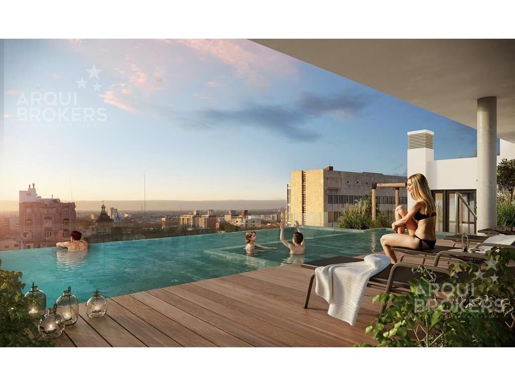 El edificio cuenta con: bicicleteros, 8 ascensores, 150 m2 de patio enjardinado, 880 m2 de azotea transitable con circuito aeróbico, solárium y terraza jardín, lobby con conswerjería 24 hs y sector de estar. Espacio para co working, salas para eventos con patio en planta baja, sala para eventos con terraza en primer piso, rooftop con barbacoa completa, terraza jardín. laundry, jardín central con espejo de agua.