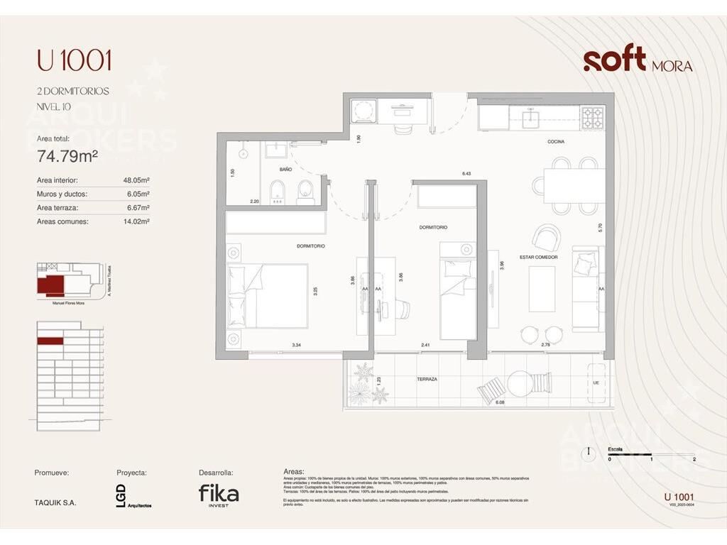 Piso 10 al frente sobre Flores Mora con orientación sur.