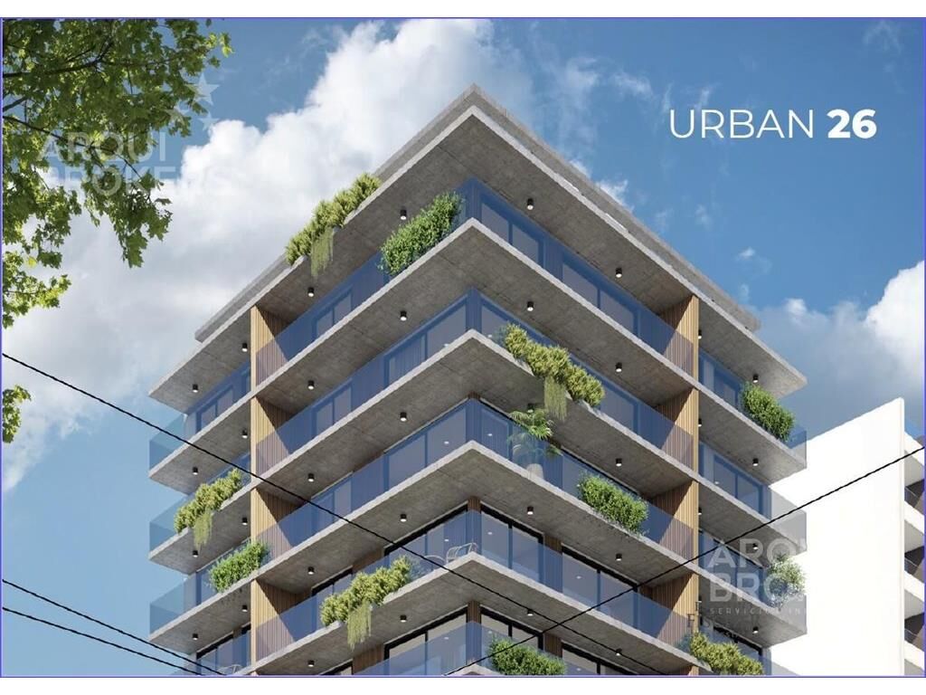 Living comedor con terraza al frente en esquina de 25m2, cocina integrada con placares, tendrá incluidas e instaladas campana extractora de