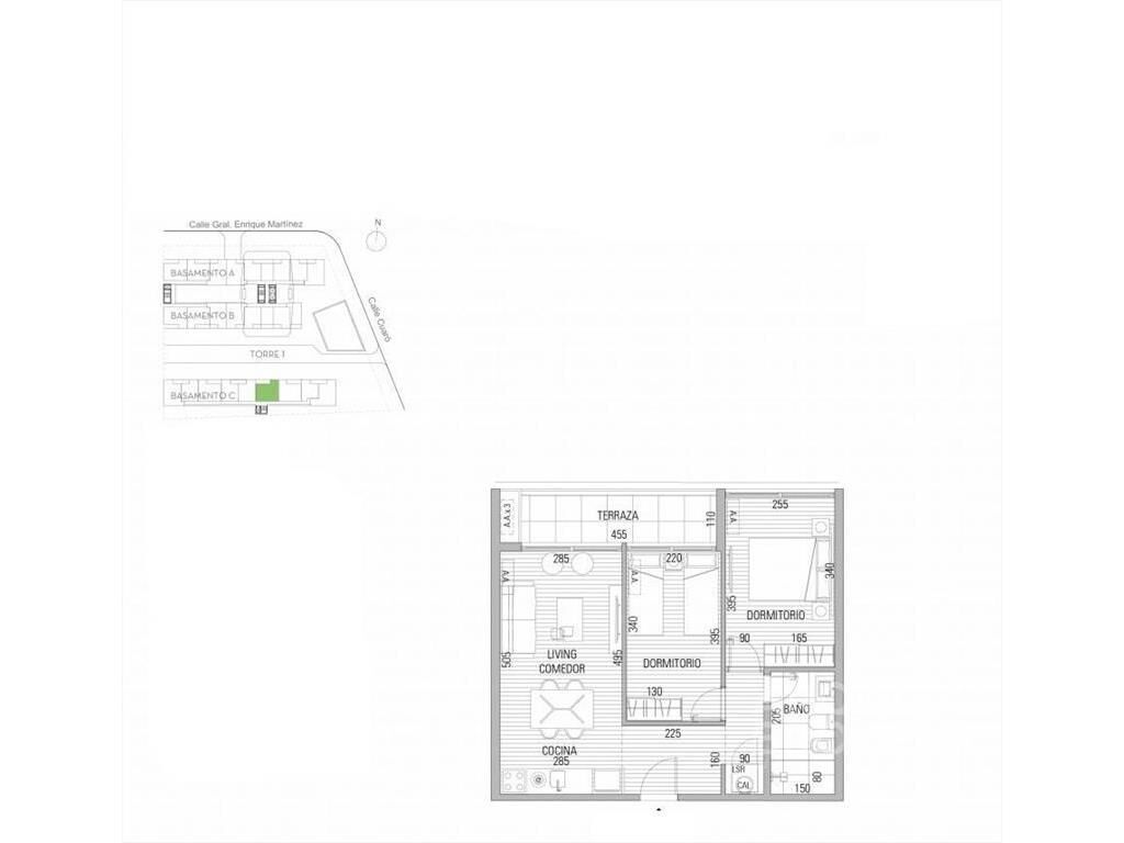 Living comedor con terraza, cocina integrada con placares bajo y sobre mesada, campana y previsión para conexión de lavarropas, 2 dormitorios, 1 baño.