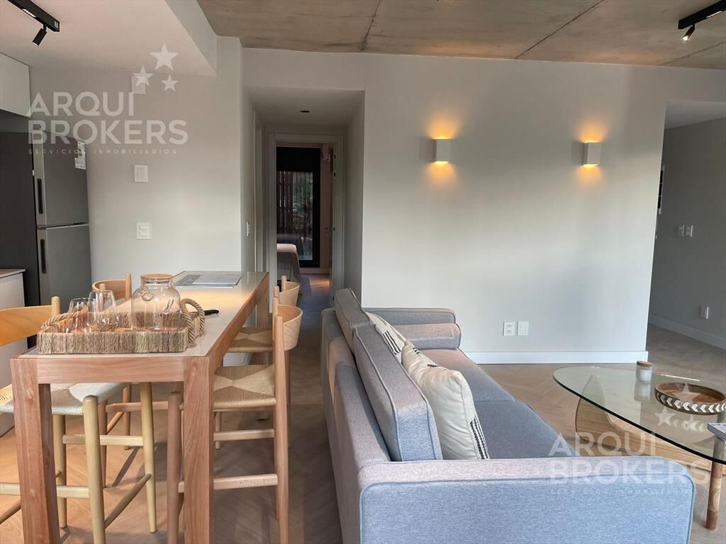 Living comedor con amplia terraza al frente, cocina integrada con placares, horno, anafe y campana, terraza lavadero, 2 dormitorios con placares, 1 baño completo. Previsión para instalación de aire acondicionado. Vidrios DVH.