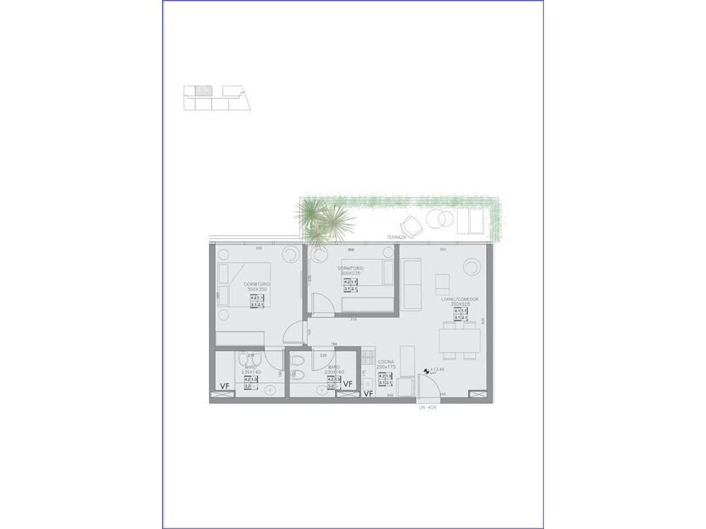 Living comedor con terraza, cocina integrada con placares, horno empotrado, anafe eléctrico y campana, 2 dormitorios con placares, 1 en suite, 2 baños completos. Previsión para aire acondicionado.