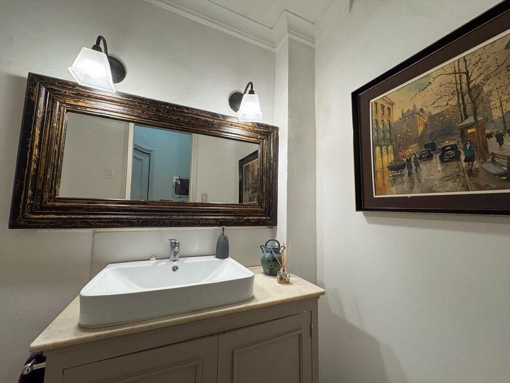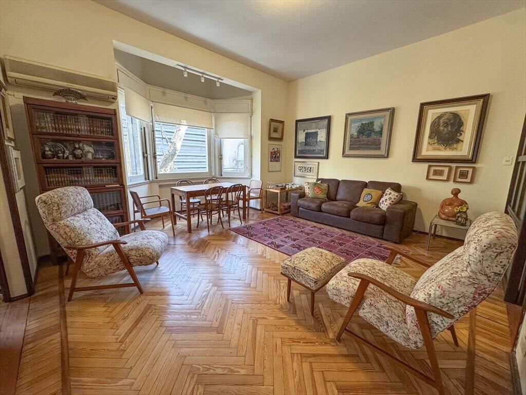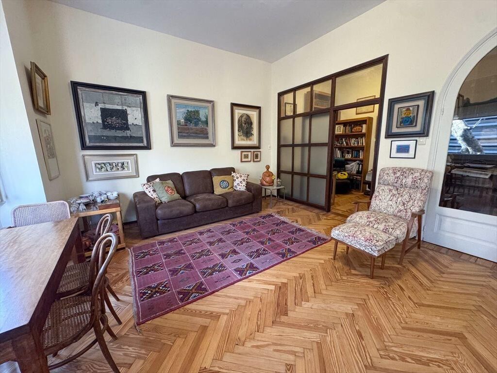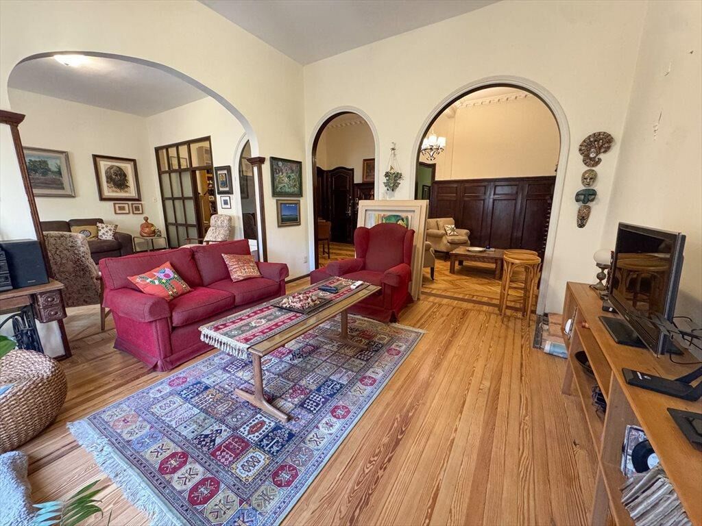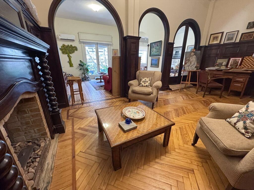 Gran recepción al frente con balcón francés. Pisos de incienso, techos altos con molduras, estufa de etanol. Recepción, comedor y estar definido, más escritorio. Baño social reciclado. Cocina reciclada con comedor diario.