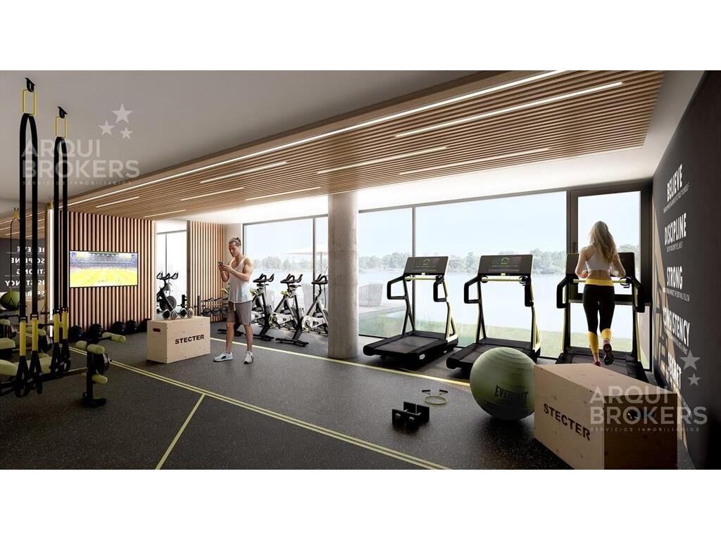 El edificio cuenta con con barbacoas con living, cowork, gimnasio, playroom, piscina interioy y exterior climatizada, solárium, losa radiante, seguridad, laundry, estación eléctrica, bicicletero, muelle privado y kayaks.