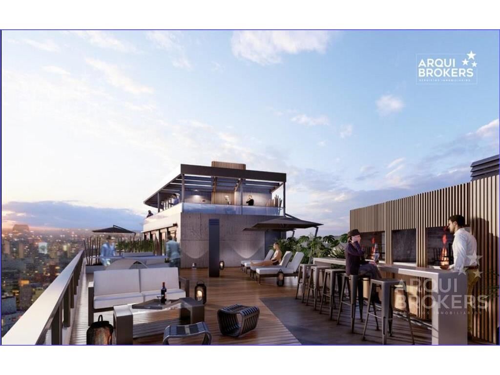 Amenities: cowork, rooftop lounge con livings exteriores, fogones y parrilleros, club house con parrillero, espacio gourmet con cocina abierta,