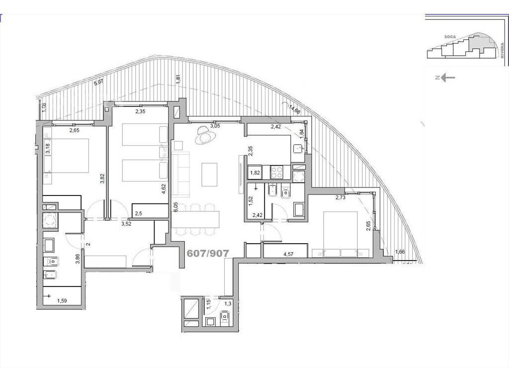 Living comedor con amplia terraza al frente en esquina de 20 m2 aproximadamente, cocina integrada con placares y conexión para lavarropas y campana. 3 dormitorios al frente con placard, 1 en suite con vestidor, 2 baños completos y 1 baño social.