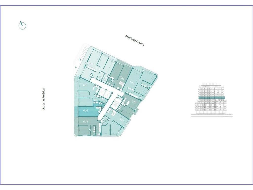 Piso 9 al frente sobre Melchora Cuenca con orientación noreste.