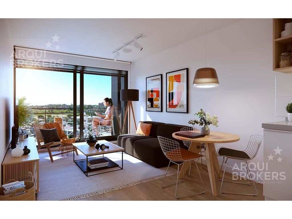 Living comedor con terraza al frente, cocina integrada con placares, 1 dormitorio al frente, 1 baño.