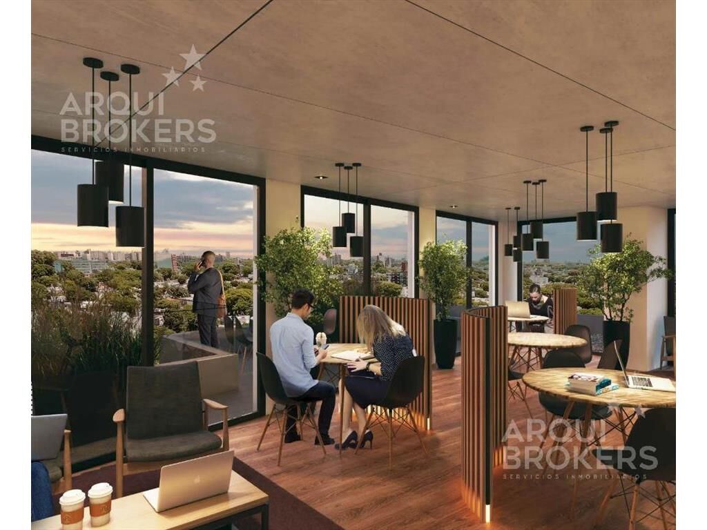 El edificio cuenta con espacio Co-Work, gimnasio, parrillero, solárium, laundry, fogones, livings exteiores y co-living.